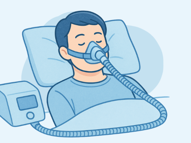 (仮)無呼吸を放置すると、高血圧・不整脈・心不全などの原因にもなります。当院では簡易検査から治療を通して質の良い睡眠を取り戻すお手伝いをしています。